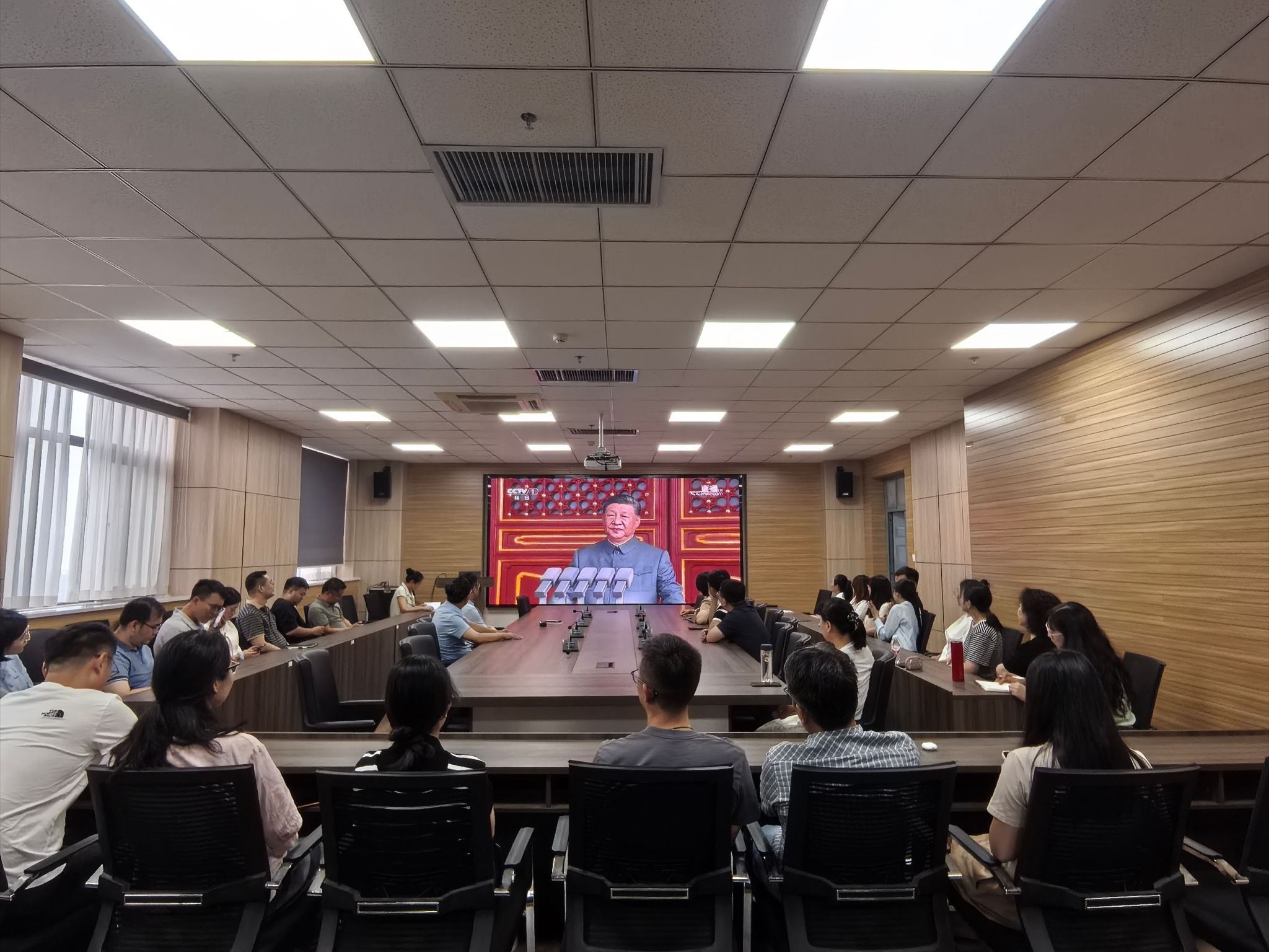 积极组织全体教职工在惟德楼1313会议室集体观看纪念中国人民抗日战争暨世界反法西斯战争胜利80周年阅兵仪式直播活动,共同回顾峥嵘岁月,感受强国强军时代力量。