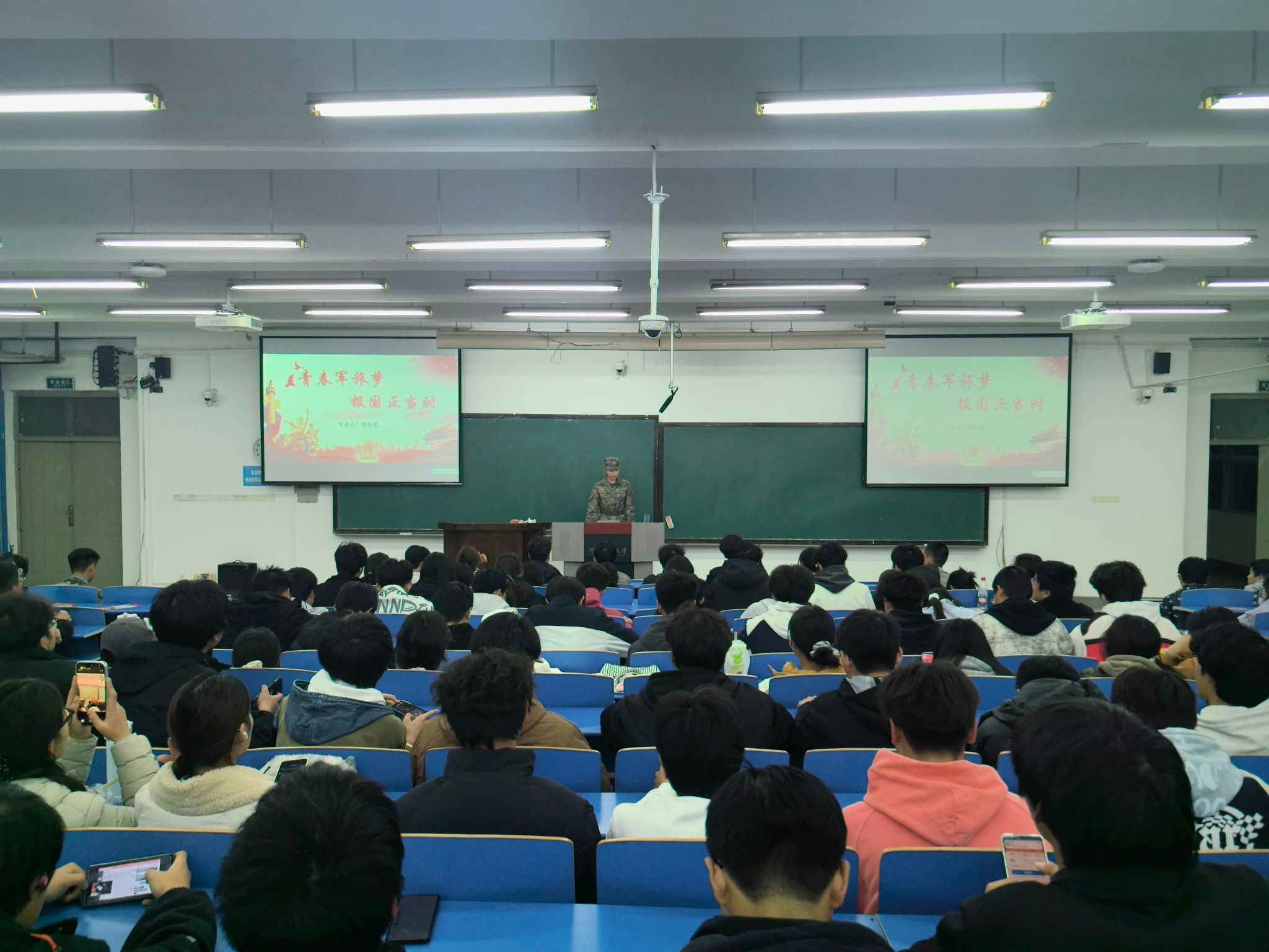 宣讲会伊始,身着戎装的宣讲员英姿飒爽地登上讲台。宣讲过程中,宣讲员们分享了亲身经历:既有在边疆严寒中坚守哨位的执着坚韧,也有抢险救灾时与战友并肩作战的无畏英勇。这些汗水与热血交织的军旅故事,让同学们深切体会到军旅生涯对个人意志的极致锤炼,以及对使命感的深度铸就。他们以激昂有力的语调,全面深入地解读参军入伍相关政策,详细涵盖入伍条件、报名流程及各项优惠政策,让同学们对参军基础信息有了清晰认知。